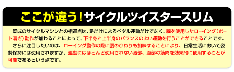 ●トリプルアクションを実現したサイクルマシーン!ペダリング運動+ツイスト運動+ローイング運動(ボート漕ぎ)